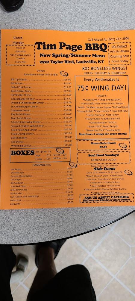 Welcome to Tim Pages Cornerstone, your premier destination for authentic Afro-American BBQ in Louisville, KY! Located at 2922 Taylor Blvd, we offer a casual yet vibrant atmosphere perfect for families, groups, and solo diners alike. Indulge in mouthwatering local specialties while enjoying our fast service and access to sports on the big screen. With options for dining in, takeout, or delivery, you're always covered! Our menu features classic dishes, shareable portions, and delightful desserts, with happy hour specials to elevate your experience. We accommodate all guests with accessible facilities and welcome reservations. Join us for a memorable BBQ feast today!